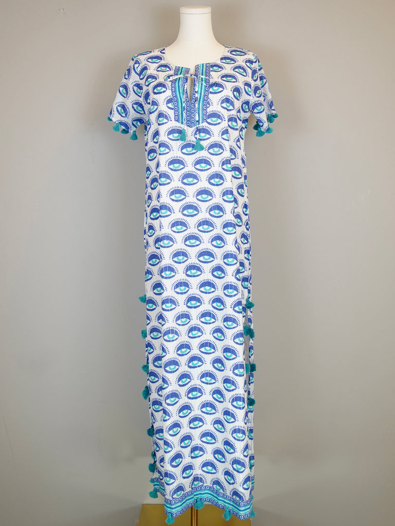 Maharani Maxi Dress - Eye- White/Capri Turquoise
