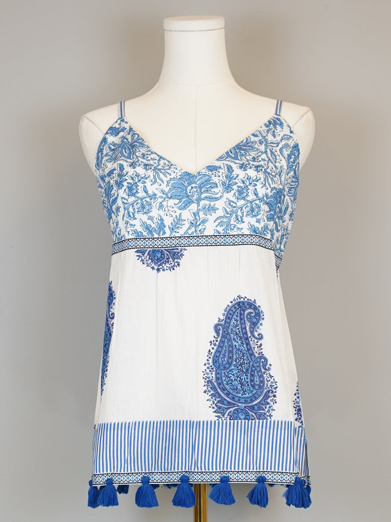 Fiesta Tank Top- Large Paisley- White/Blue