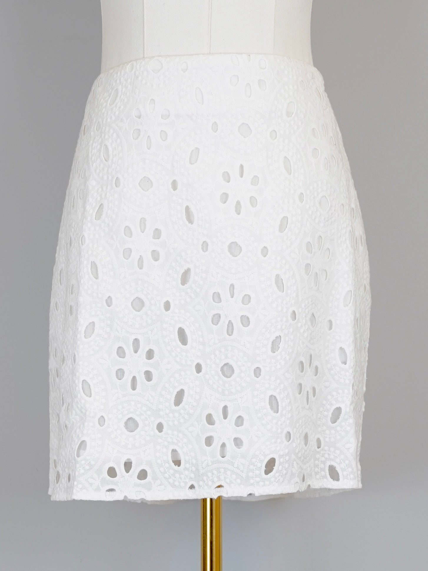 This one is made in a super chic custom embroidery eyelet in solid white. And matches our cute Butterfly Top! Side zip, pockets, lined in soft cotton. 100% cotton fabric with embroidery.